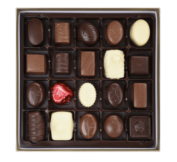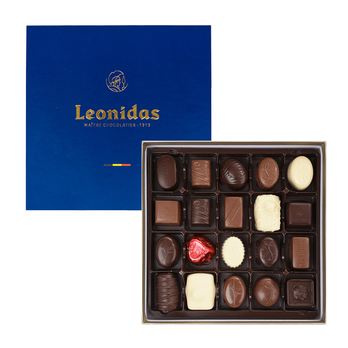 ეს დახვეწილი სტილისა და ლამაზი დიზაინის ყუთი შეიცავს 20 ცალ ლეონიდასის ექსკლუზიურ შოკოლადის ქმნილებებს — კლასიკური და გურმანული არომატების ჰარმონიული შერწყმა, შექმნილი მხოლოდ 100%-იანი კაკაოს კარაქისგან, პალმის ზეთის გარეშე.