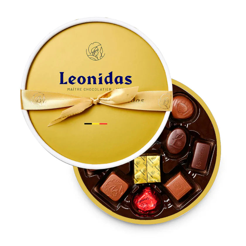 ეს დახვეწილი სტილისა და ლამაზი დიზაინის ყუთი შეიცავს დაახლოებით 360 გრამ ლეონიდასის ექსკლუზიურ შოკოლადის ქმნილებებს — კლასიკური და გურმანული არომატების ჰარმონიული შერწყმა, შექმნილი მხოლოდ 100%-იანი კაკაოს კარაქისგან, პალმის ზეთის გარეშე.